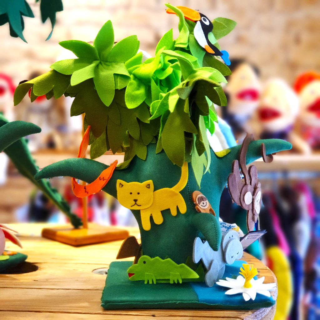 Esta linda Árvore foi confeccionada em plush e suas folhas em feltro. Possui uma base quadrangular para sua firmeza. Acompanha diversos animais e elementos da fauna brasileira, assim, trazendo o conhecimento e a importância do valor que representam para nós. Cada animalzinho possui velcro que permite ser grudado ou encaixado na árvore de várias formas. Um importante brinquedo educativo para desenvolver a criatividade, vocabulário, coordenação motora e socialização.