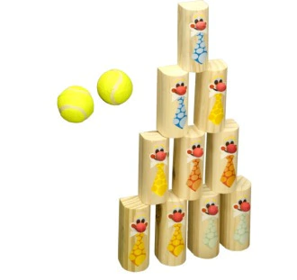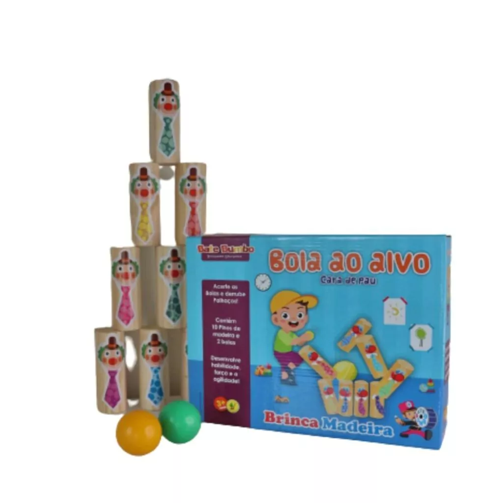 Jogo divertido e tradicional com 2 bolas e 10 pinos de madeira caracterizados por divertidos bonecos de palhaço que formam um bola ao alvo diferente e engraçado.