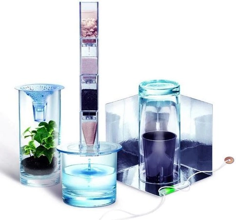 O Kit de Ciências da Água Limpa da 4M ensina sobre a ciência da purificação e reciclagem da água. Este kit contém todos os componentes necessários para realizar três experiências diferentes: purificação solar de água, dessalinização da água e um sistema de filtragem de carbono.