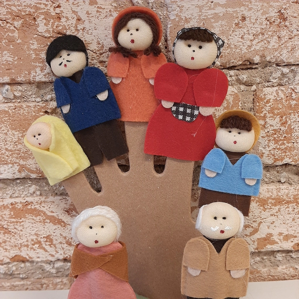 Dedoches infantis sempre fazem parte de um universo especial e divertido para as crianças. Aqui são apresentados 7 dedoches representando uma família, que ajudarão no desenvolvimento da criatividade e imaginação.