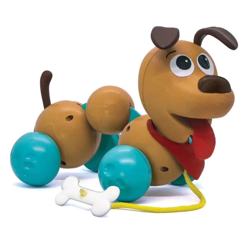 Cachorrinho está pronto para passear! Seu corpo é em formato de bolas e cordão como ossinho que fazem ele ser tão divertido de brincar.