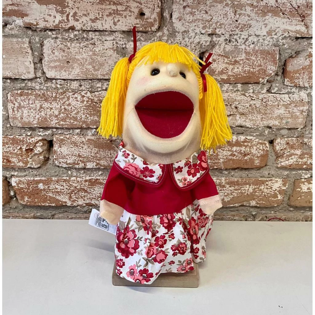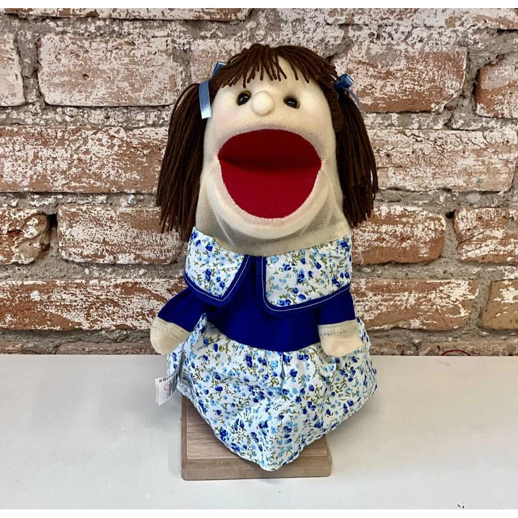 Fantoche confeccionado em tecido 100% algodão, com enchimento e articulação na boca, ideal para contar historinhas, estimular a criatividade e o desenvolvimento emocional da criança.