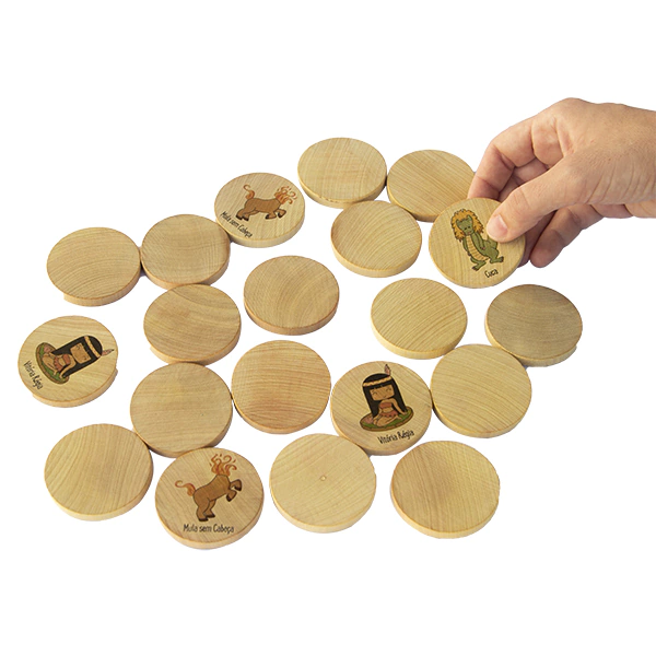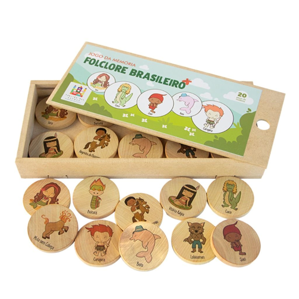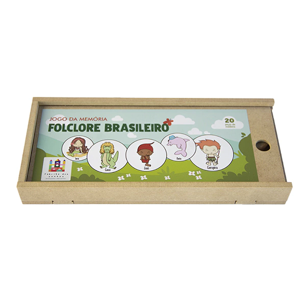 Jogo da memória no tema de folclore brasileiro, contendo uma caixa e 20 peças, ou seja, 10 personagens com duas peças de cada um. Confeccionado artesanalmente em madeira de reflorestamento. Nossos brinquedos são elaborados para atender diversas idades e feitos a mão com muito carinho!