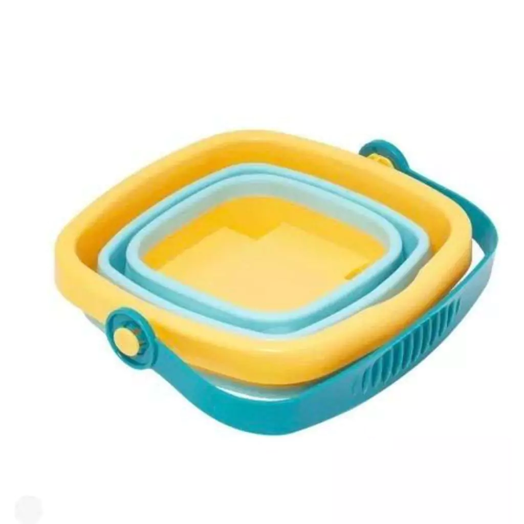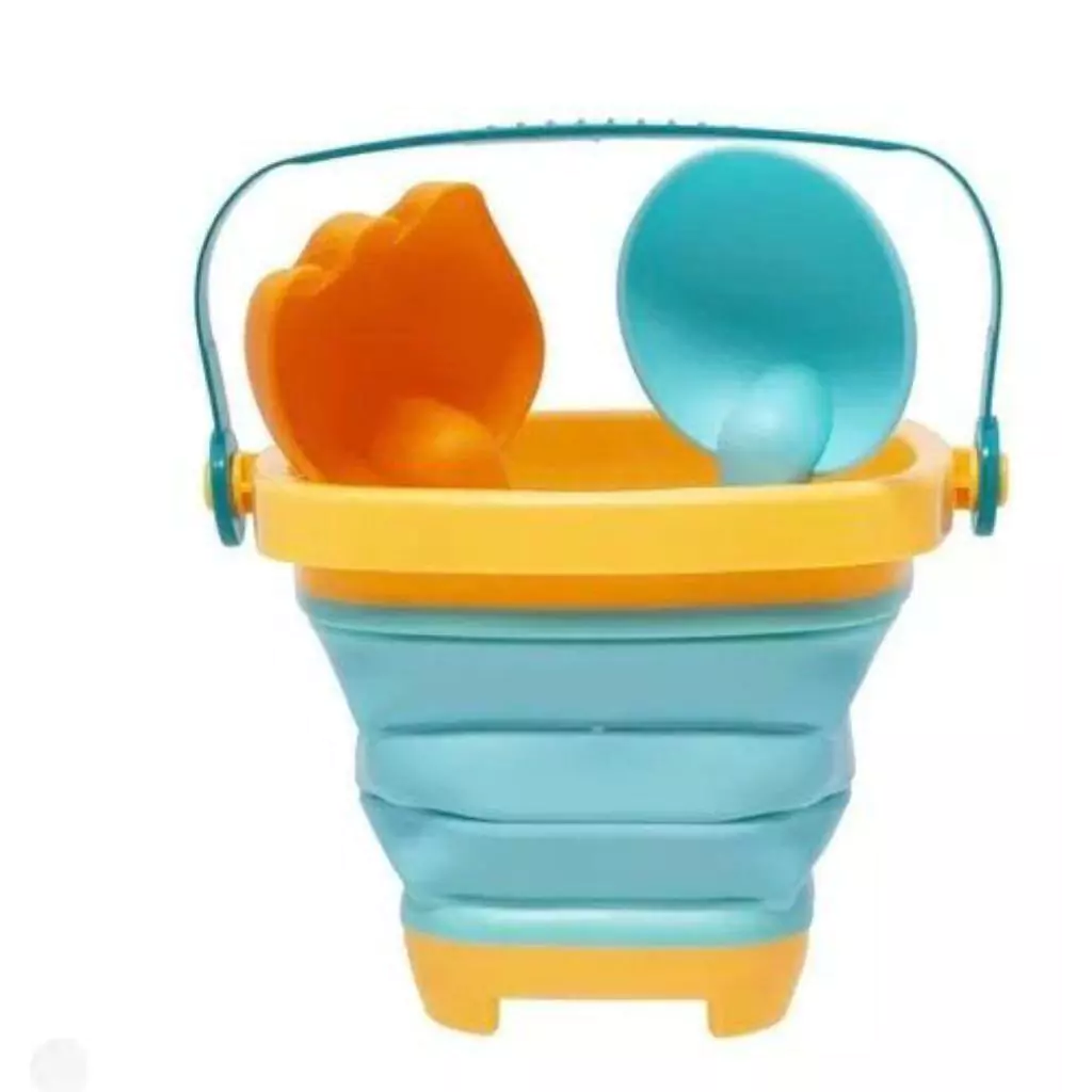 O Baldinho por ser retrátil não ocupa espaço na mala, podendo ser levado para todos os lugares, acompanha 3 forminhas , 1 pá e 1 gargo de areia.