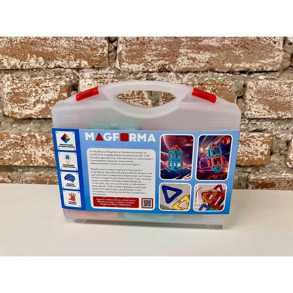 Mag Formas são formas geométricas em acrílico com imã, possibilitando montagens tridimensionais. Estimula a capacidade de inventar e trabalha o lado direito e esquerdo do cérebro fazendo com que a criança utilize ambas as mãos nivelando o desenvolvimento. Estimula o racíocinio lógico e desenvolvimento intelctual criativo.