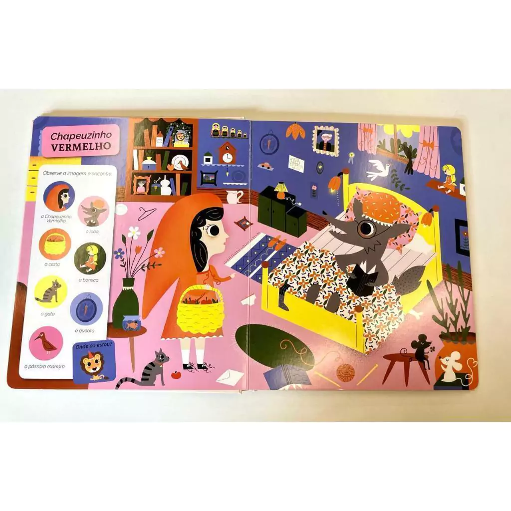 Na versão Procure e Encontre dos Pequenininhos são 9 páginas com ilustrações dos principais Contos insfantis como Chapeuzinho Verlho, 3 Porquinhos, Branca de Neve , Pinoquio entre outros , com ilustrações para as crianças encotrarem.
