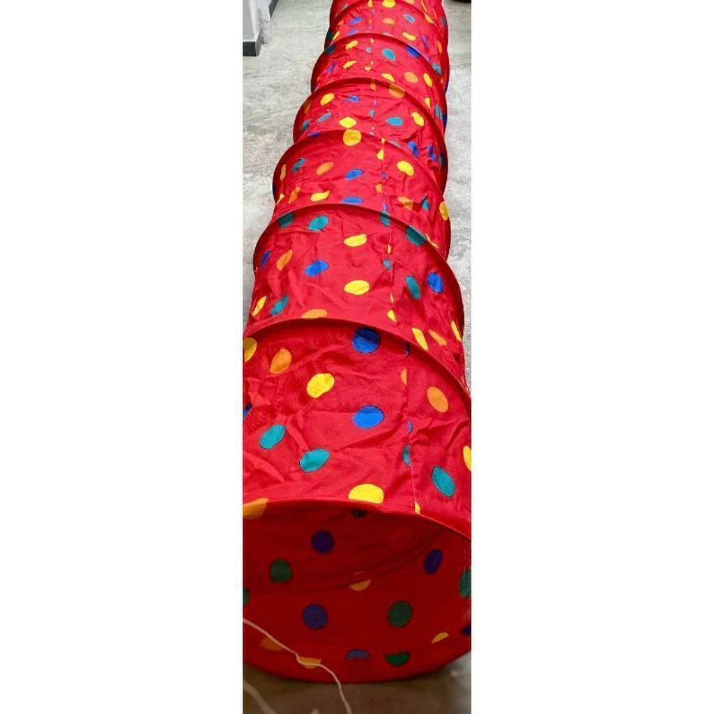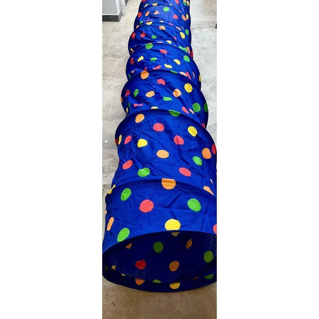 Túnel Grande, medindo 3 metros! Em tecido super resistente. Pelo seu comprimento, este item já é destinado a crianças a partir dos 2 anos, quando as crianças já se sentem seguras para atravessar um percurso maior. Quando fechado, ocupa o espaço de alguns bambolês, super portátil e fácil de guardar. Quando aberto é diversão garantida, possibilitando-se brincadeiras integradas com barraquinhas, ligando ambientes diferentes, etc. Um adereço muito divertido ao faz-de-conta dos pequenos. As estampas e cores podem variar a depender do lote, consulte-nos a respeito!